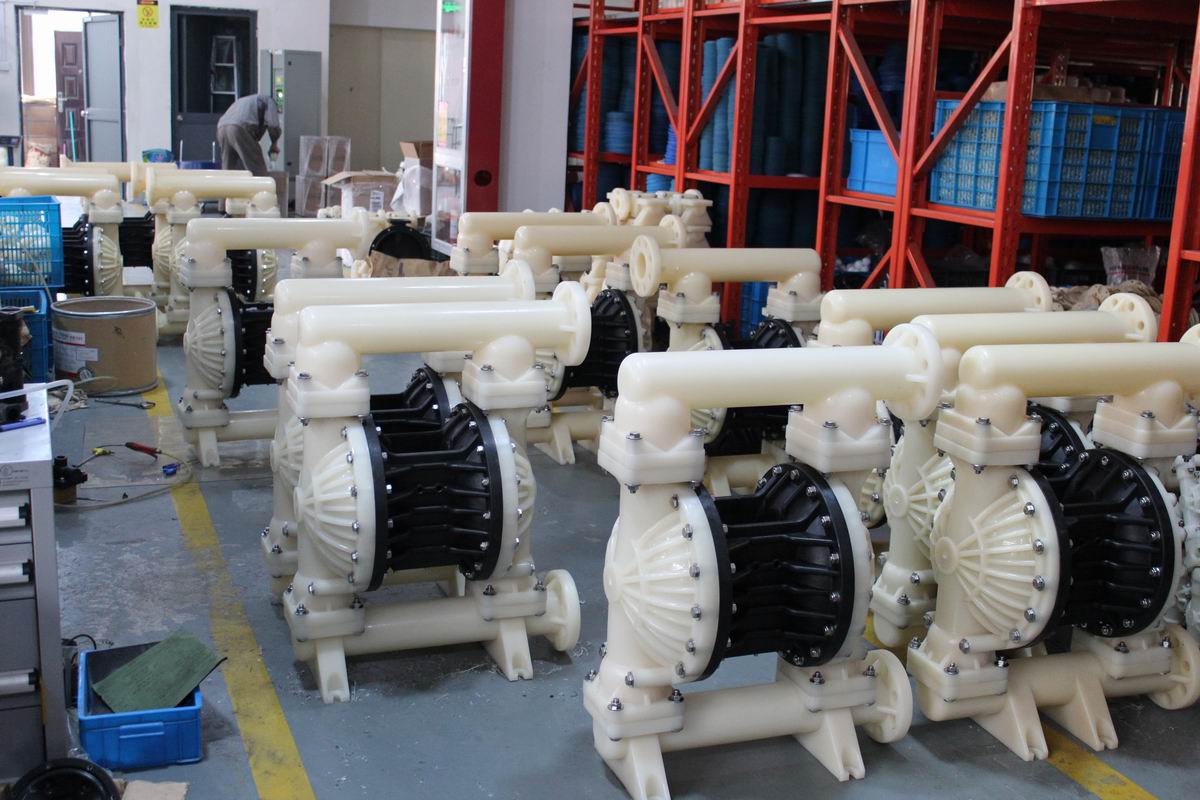 大流量隔膜泵既能抽送流動的液體和干粉,又能輸送一些不易流動的介質(zhì),具有自吸泵、潛水泵、屏蔽泵、泥漿泵、和雜質(zhì)泵等輸送機械的許多有點。比老型QBY氣動隔膜泵流量和揚程同樣口徑的要高出1/2左右。