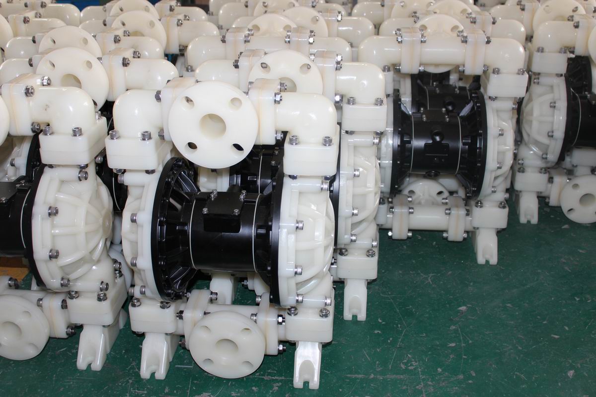 塑料隔膜泵使用方便、工作可靠、開停只需簡(jiǎn)單地打開和關(guān)閉氣體閥門。即使由于意外情況而長(zhǎng)時(shí)間無介質(zhì)運(yùn)行或突然停機(jī)泵也不會(huì)因此而損壞。一旦超負(fù)荷,泵會(huì)自地動(dòng)停機(jī),具有自我保護(hù)性能,當(dāng)負(fù)荷恢復(fù)正常后,又能自動(dòng)啟動(dòng)運(yùn)行。